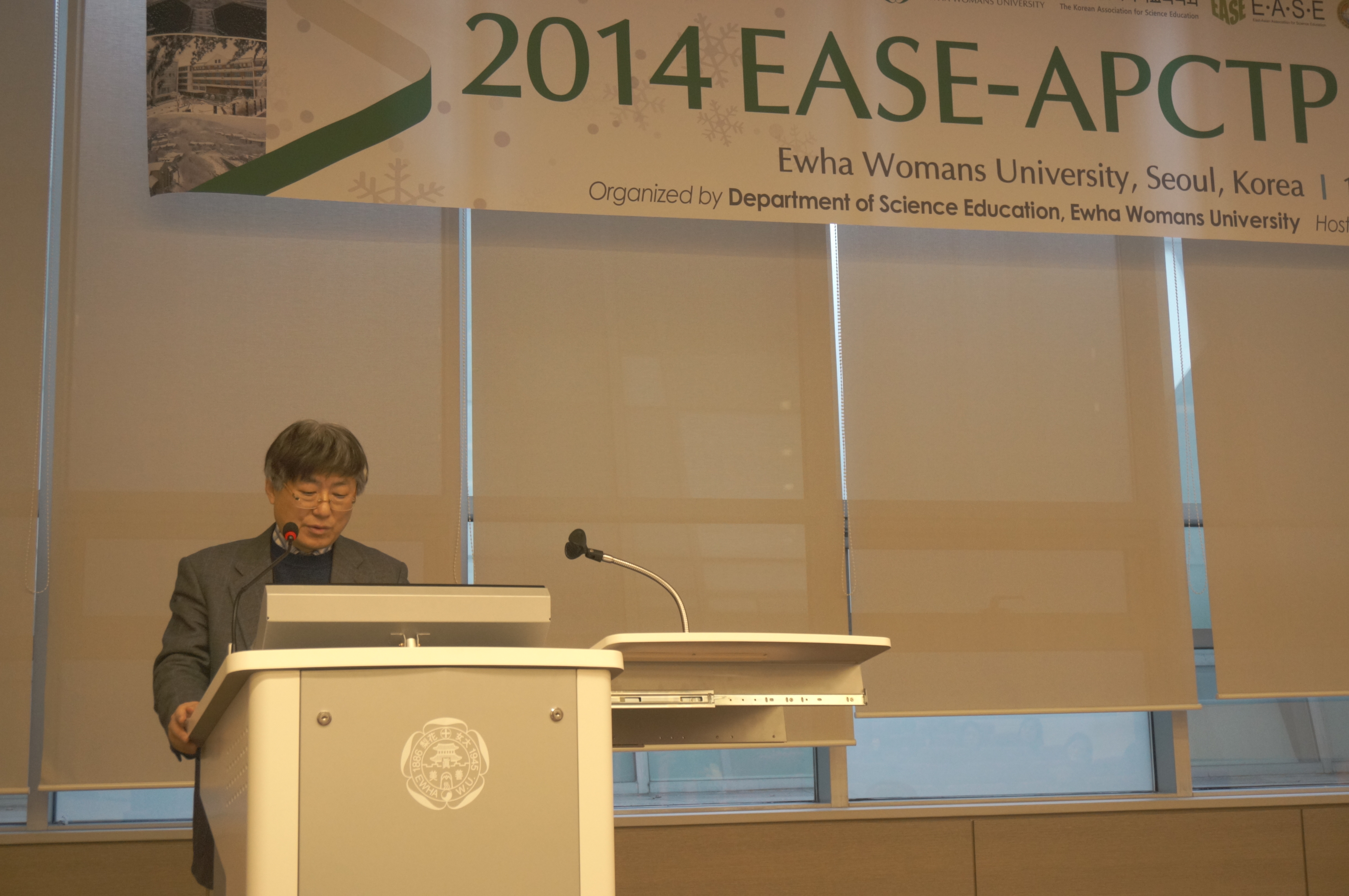 Hosting Workshop by Ewha Prof Kim is delivering welcoming address |